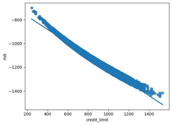 There is no relationship between credit limit and risk. We need to select the right variables to be included in the regression.